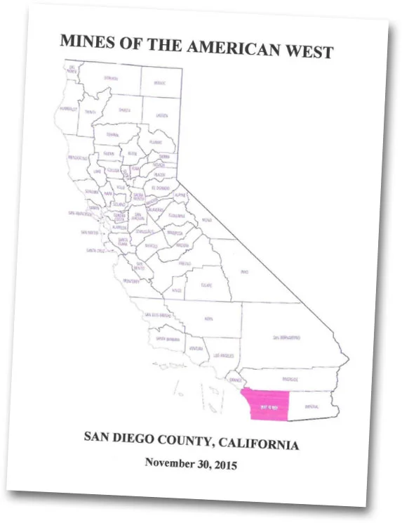 The latest from the Mines of the American West series is San Diego County, California. It has more than 1,350 entries: 600+ for gold mine and gold-related properties, 150 gemstone-related, and 50 related to tungsten. Published on the Kindle platform, the e-book comes in at just under 800 pages.