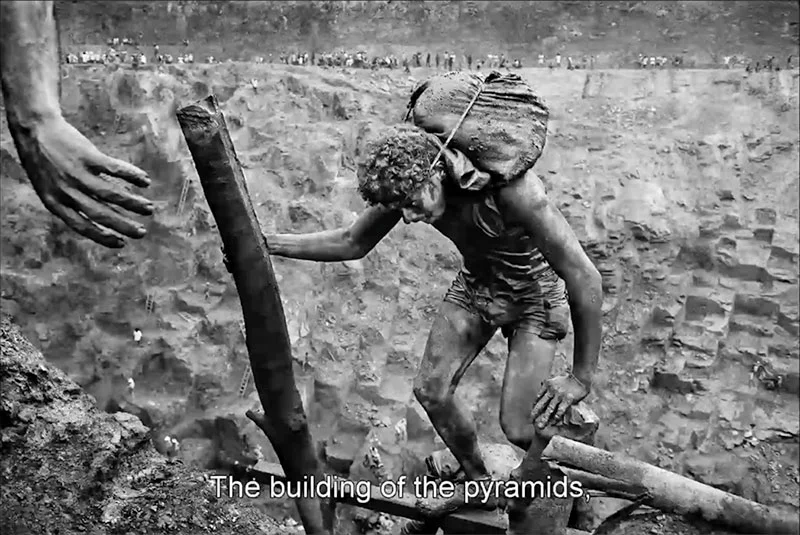 Having grown up in the famous gemstone-bearing state of Minas Gerais, Salgado begins his remarks in the film about seeing the Brazilian gold mine to the north, known as Serra Pelada (Naked Mountain), being worked by fifty thousand men. (The mine was abandoned in 1986, the year of the photographer's visit.) "When I reached the edge of that enormous hole," Salgado says in his adopted French language, "every hair on my body stood on end. I'd never seen anything like it. Here, in a split second I saw unfolding before me the history of mankind. The building of the pyramids."